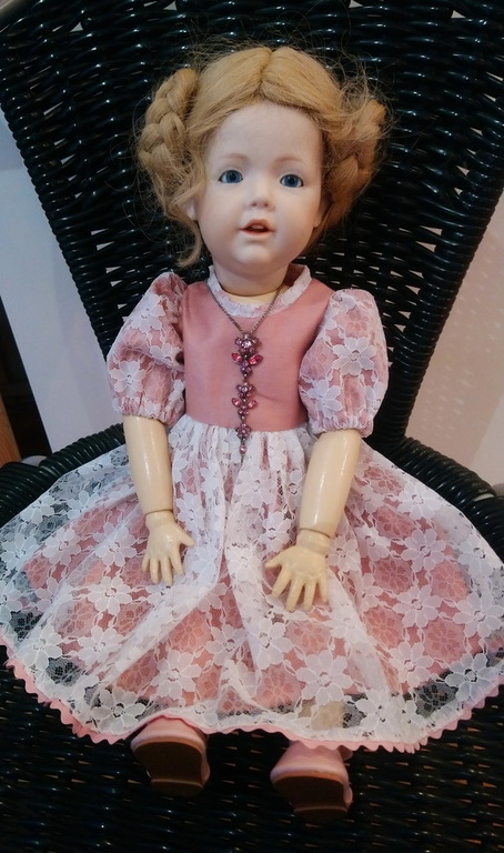 Selbstverständlich können Sie ihr Puppenkind auch stilgerecht, dem Alter der Puppe entsprechend, einkleiden lassen. Auf Wunsch werden die Kleider aus antiken Stoffen und Spitzen gefertigt.